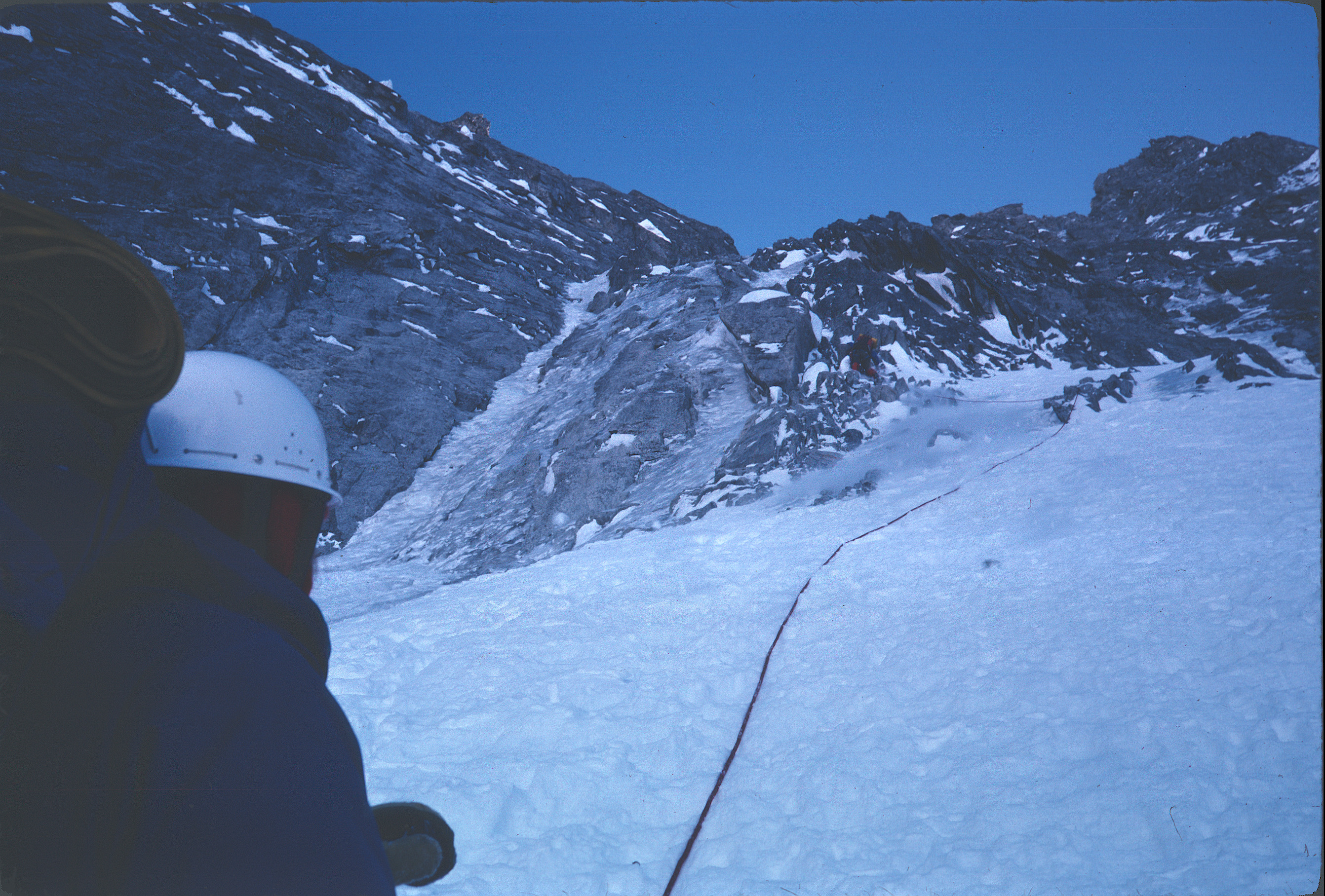 The North Face of Pointe du Domino offered a virtual paradise of ice and mixed climbing in the winter of 1979.