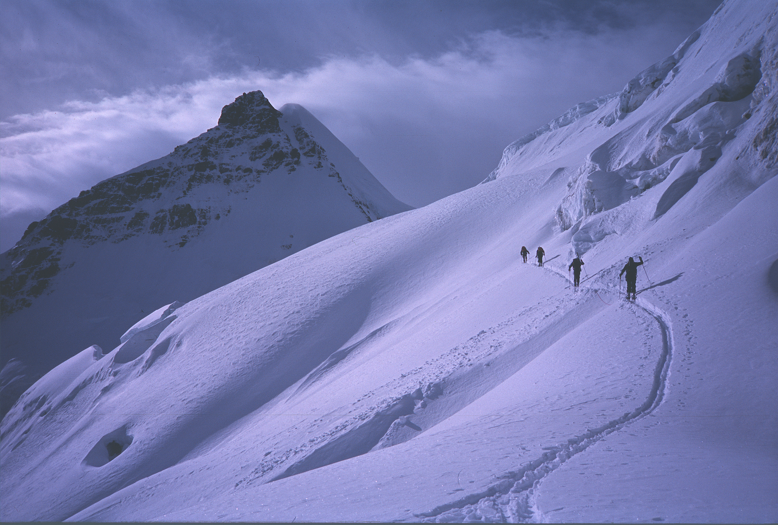 Our route was made easier by skiing the sections that allowed it, and using crampons and ice axe when we could not.
