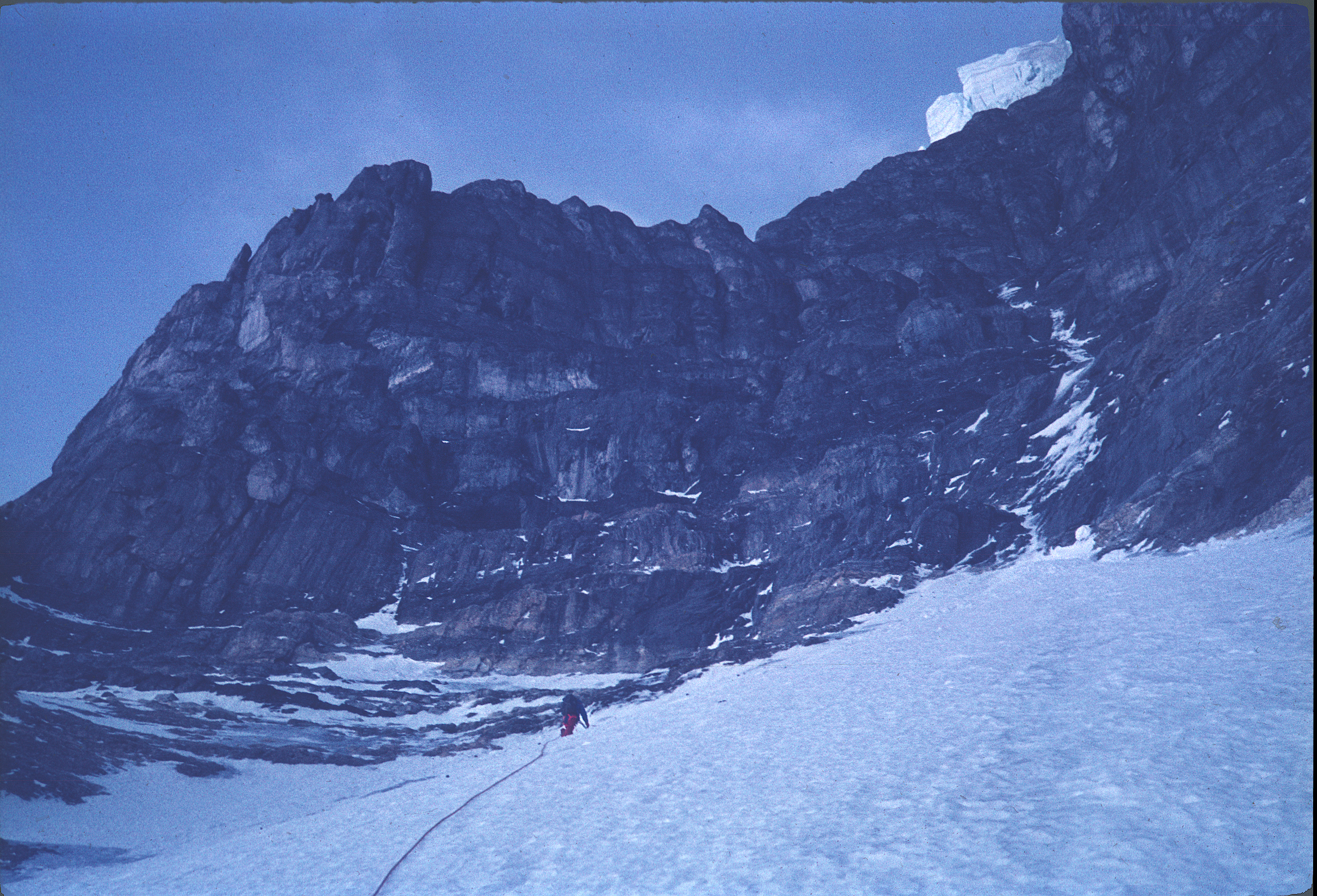 Our view of the North Face from directly beneath it foreshortens the difficulties we know will test us at -20 C.