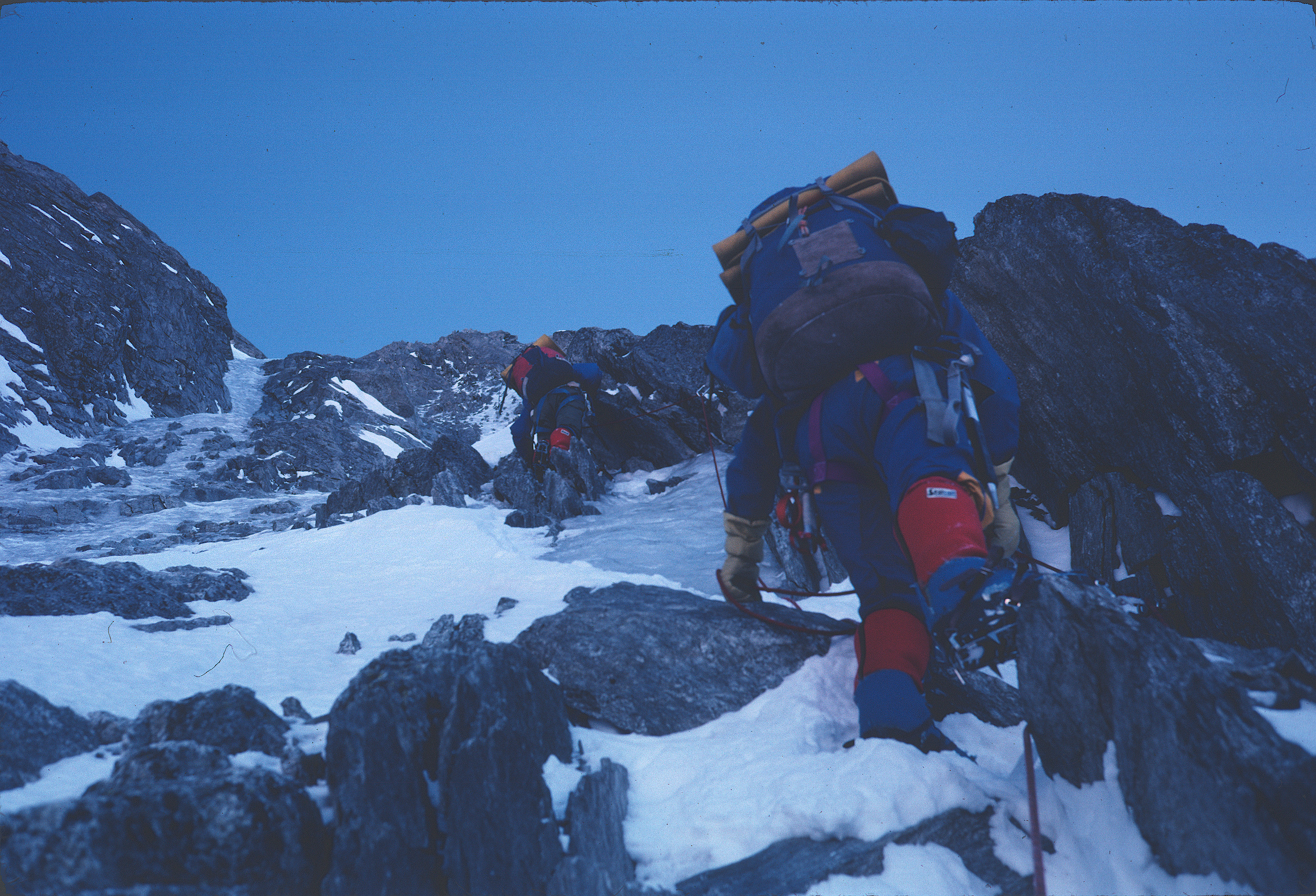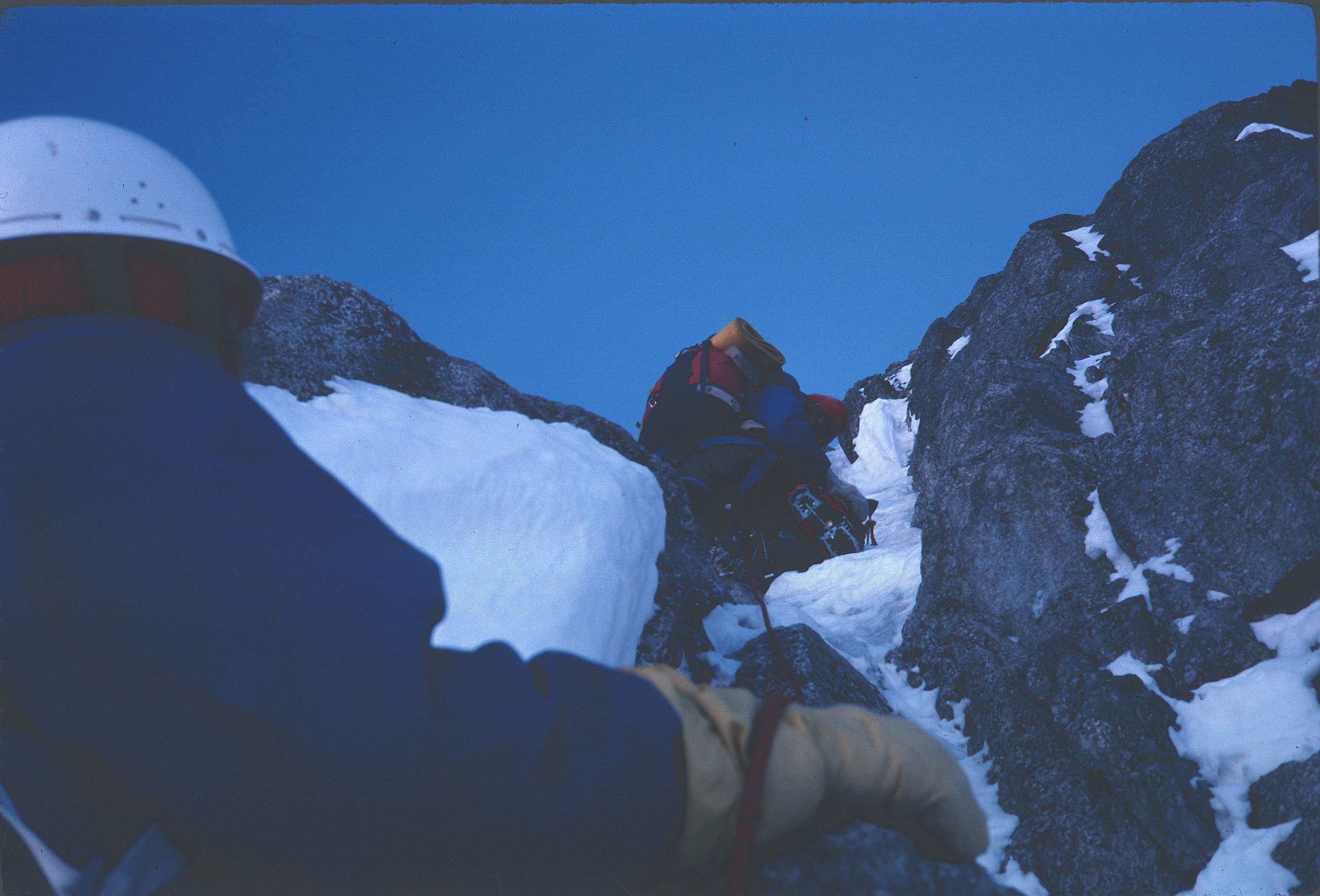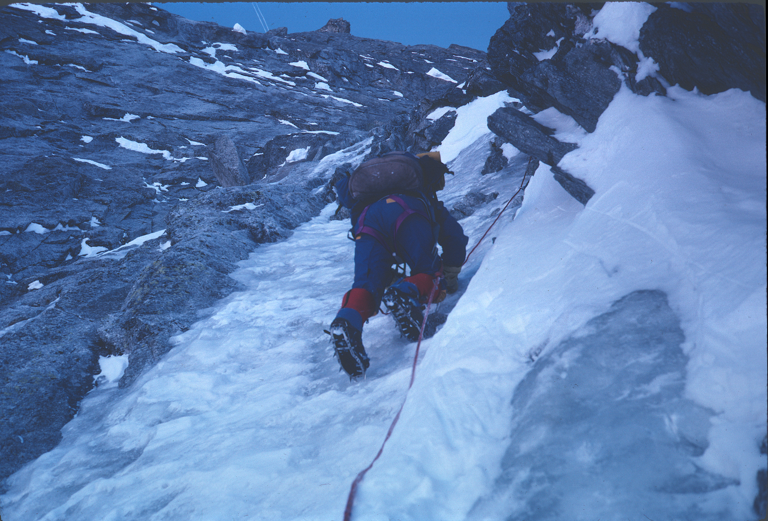 The North Face of Pointe du Domino offered a virtual paradise of ice and mixed climbing in February, 1979.