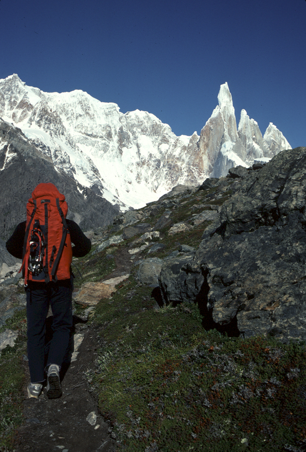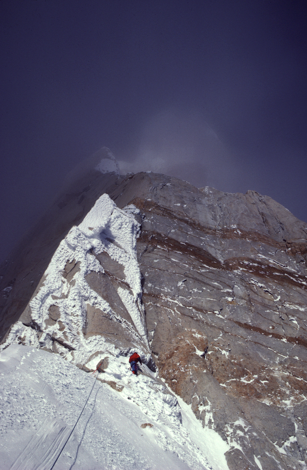 Mark Richey cliimbing one of the amazing pitches on the Southeast Ridge of the peak.